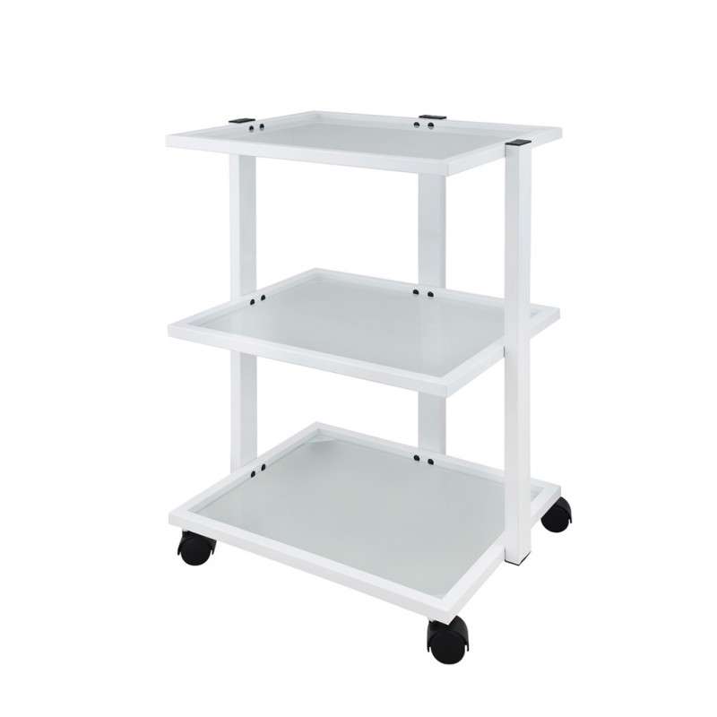 Carrito de estructura metálica en color blanco con un cajón con llave y 3...